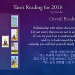 2016년의 열한번째 켈틱 크로스 리딩을 업로드 합니다. 이번 리딩에서는 변화에 대해서 이야기 합니다.사람들은 변화를 바란다고 말을 하지만 사실 용기를 내지는 못하는 경우가 많습니다.우리가 원하는 미래를 선택하고 싶다고 말하지만 선택에 따른 책임을 두려워 합니다.불행한 과거를 떨치고 일어나 풍요로운 미래를 꿈꾸지만 실제로 무엇을 어떻게 해야할지 결정하지 못하고 주저하곤 합니다. 그래서 우리는 변화를 우리 안에서 찾기 보다는 주변에서 찾곤 합니다.다른 사람들이 우연히 나의 마음을 알아주기를 몰래 바라기도 하고누군가가 내가 바라는 행동을 대신 해주기를 살며시 기대하기도 합니다.아니면 누군가가 나의 등을 억지로 떠밀어주기를 기다리고 있는지도 모릅니다. 물론 우리 주변의 누군가는 우리와 같은 꿈을 꾸고 있을 수..